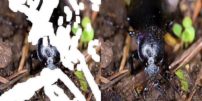 Computer vision algorithms are not only used to analyze the content of the images, as shown before but also to improve the quality and the content of the images. Nowadays basic image processing and enhancement tools such as filtering with smarter methods that use prior knowledge of the image content to improve the visual quality of the image. For example, if a model is trained to know what a bird typically looks like, then it can apply this knowledge in order to replace noisy pixels with coherent ones in bird pictures. This concept can be applied to image restoration or resolution enhancement. The figure below shows restored pixels using Nividia content-aware filling tool [1].a