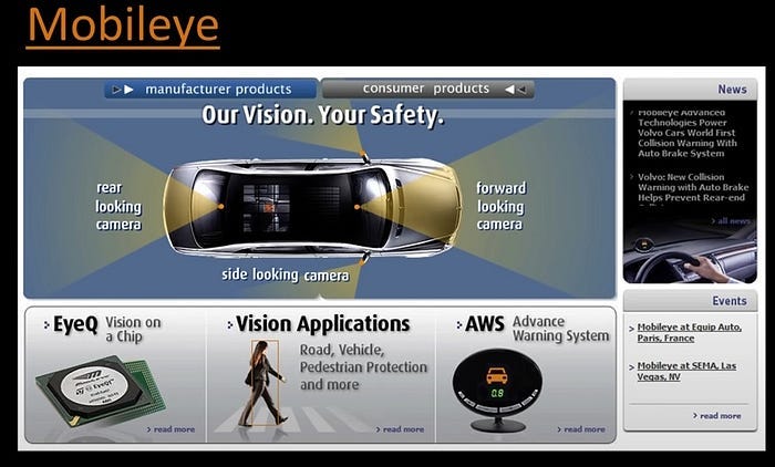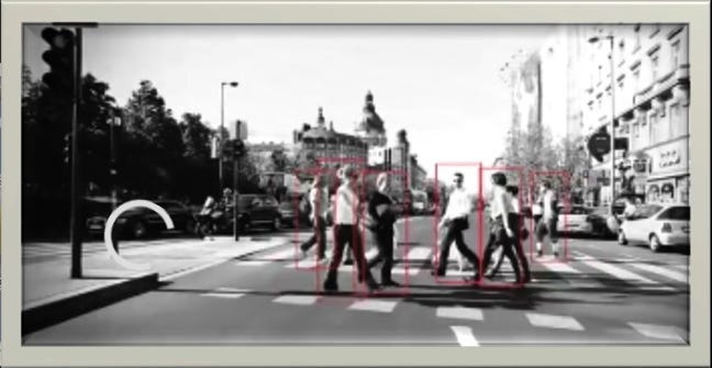 Another area that you know, really blossomed lately is the use of computer vision for automotive.This is a, a website, web picture taken from Mobileye, which is a company out of Israel. And they’ve developed all sorts of technologies that use computer vision that are relevant to automobiles. Everything from automatically recognizing signs to, here it’s a little hard to see, red outline. The system is automatically identifying where the pedestrians are. They have a system that alerts you if pedestrians getting close and you’re, seem to be going too fast. You can also build systems that either brake or slow down or whatever. But the idea is that computer vision has really gotten into smart cars.