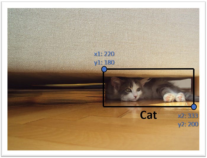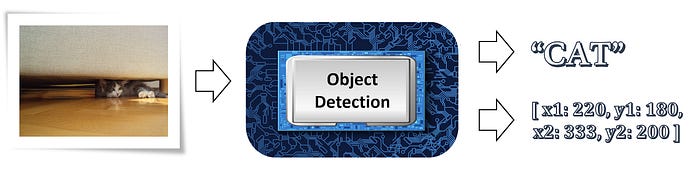 Here instead of just the label, the system also provides you with bounding box coordinates to tell where exactly the object is located in the image.